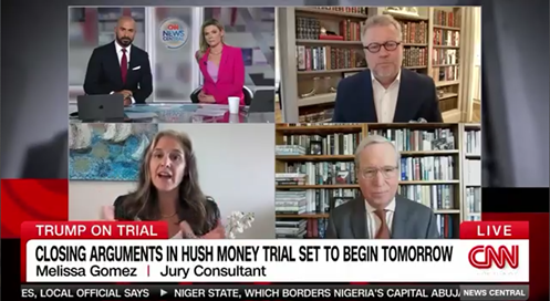 IMS Senior Jury Consulting Advisor Dr. Melissa Gomez engaged with CNN to provide her expert analysis on the closing arguments in the historic criminal trial involving former President Donald Trump.